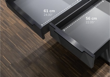 A key feature of Häcker’s 2025 innovations is the new carcase depth of 61 cm, which represents a substantial increase in both storage space and visual impact. This basic planning element allows for greater flexibility in kitchen layouts while maintaining a sleek and contemporary look.