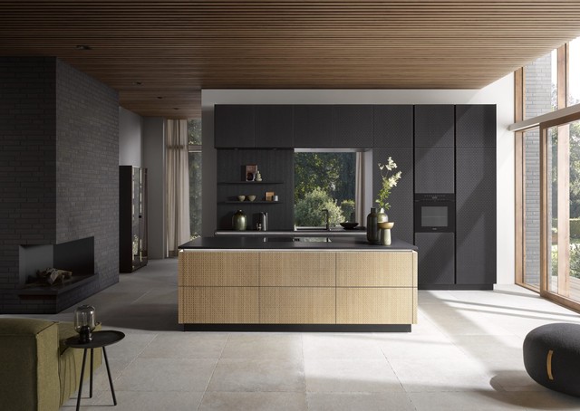 The new woven fronts, available in black oak and natural oak, beautifully blend traditional craftsmanship with modern design. The intricate Viennese weaving technique adds a tactile richness and nostalgic charm, creating a kitchen that serves as both a functional space and a refined design statement.