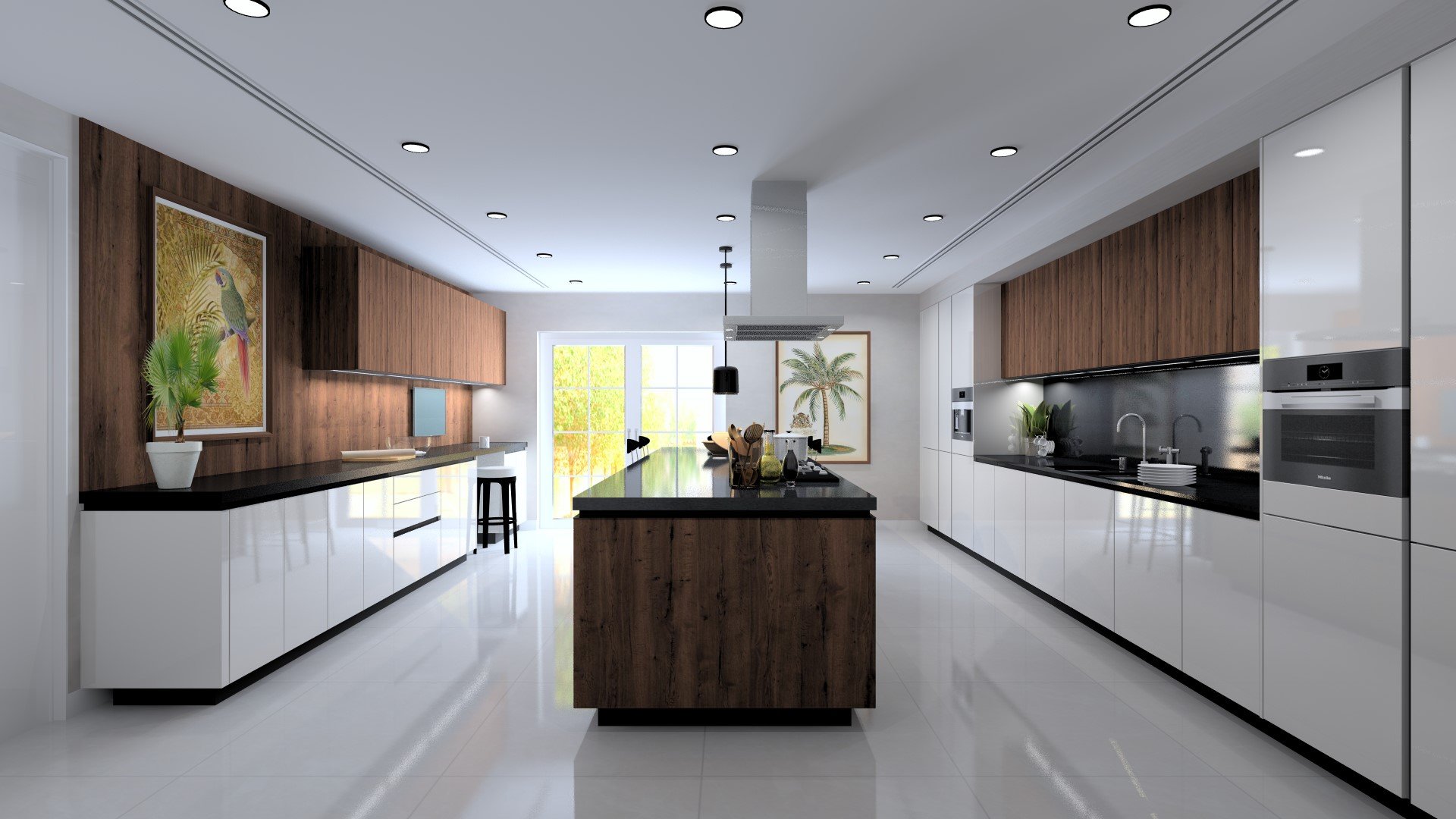 As a kitchen designer, I recommend this type of layout for people who may employ chefs or other staff to cook for them. If they cook for themselves, they may be concerned about fragrant smells wafting into other parts of the home from the meals they prepare. This layout is also suitable for families whose entertaining does not revolve around the kitchen area.