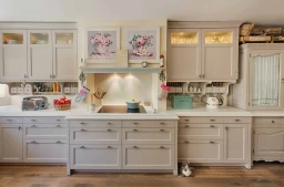 Cornices, an ornamental moulding, are a staple of Classic Elegance kitchen design. They are often used to conceal the gap between the top of the cabinets and the ceiling, creating a cohesive look. Some cornices may feature intricate carvings or moldings, while others may have a more streamlined design. They can also help visually balance the space. By extending the cabinets to the ceiling and adding a cornice, the kitchen can appear more spacious.