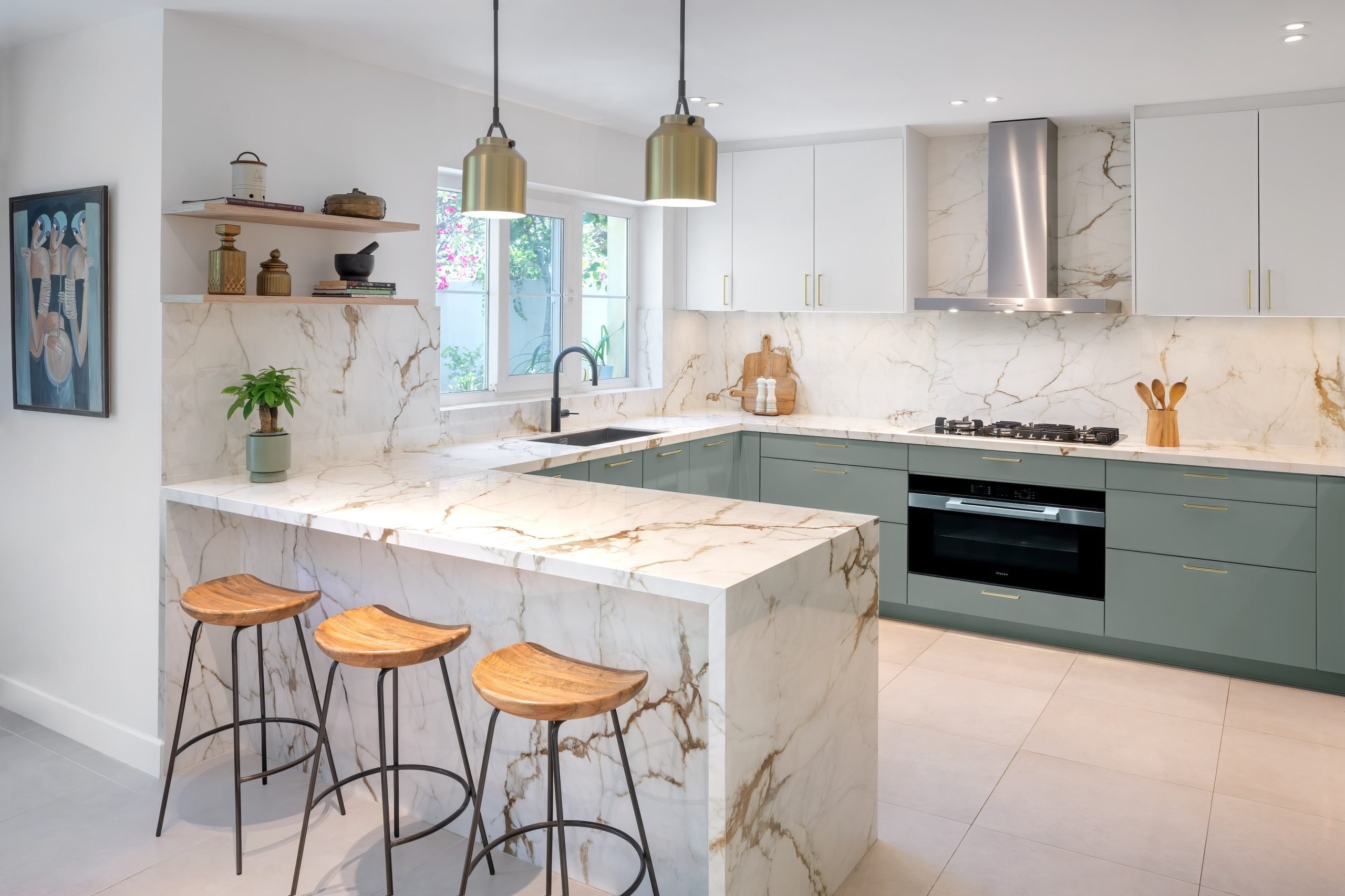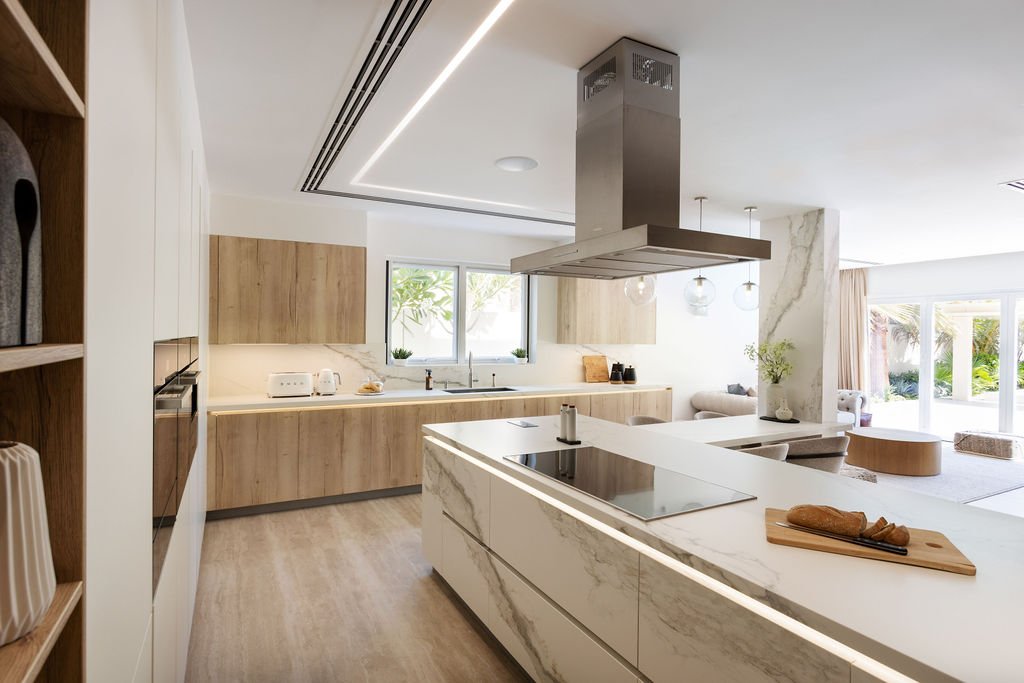 Lighting is equally important. Ensure that your kitchen is well-lit, with both natural and artificial lighting. Good lighting enhances the mood and functionality of the space. Pendant lights over the island or dining area and under-cabinet lighting can provide both practical and aesthetic benefits.