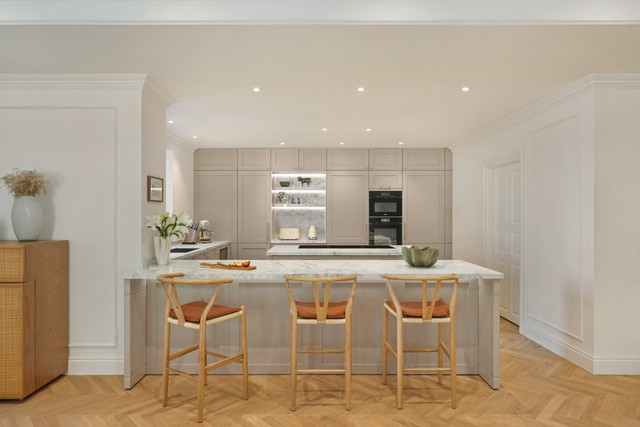 The result is a kitchen that feels integrated rather than isolated, supporting both cooking and socialising within one unified environment.