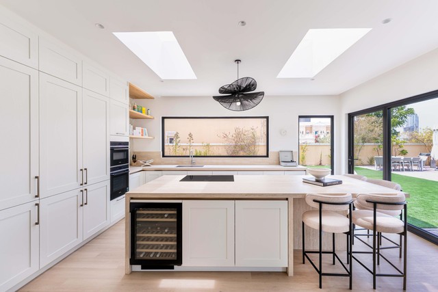 Soft tones such as taupe, beige, navy, or pale blue add understated sophistication. These accents can be introduced through furniture, splashbacks, or textiles, creating kitchens that feel warm yet versatile.